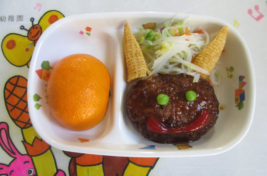 給食で、かわいい鬼さんハンバーグが出ました!