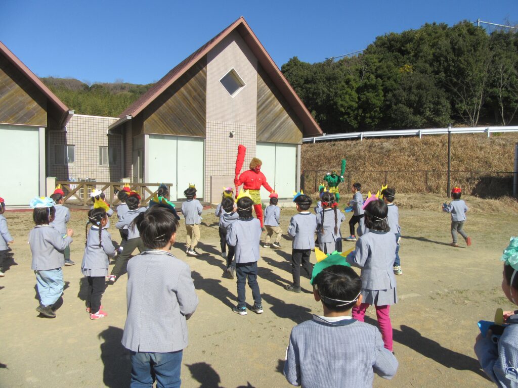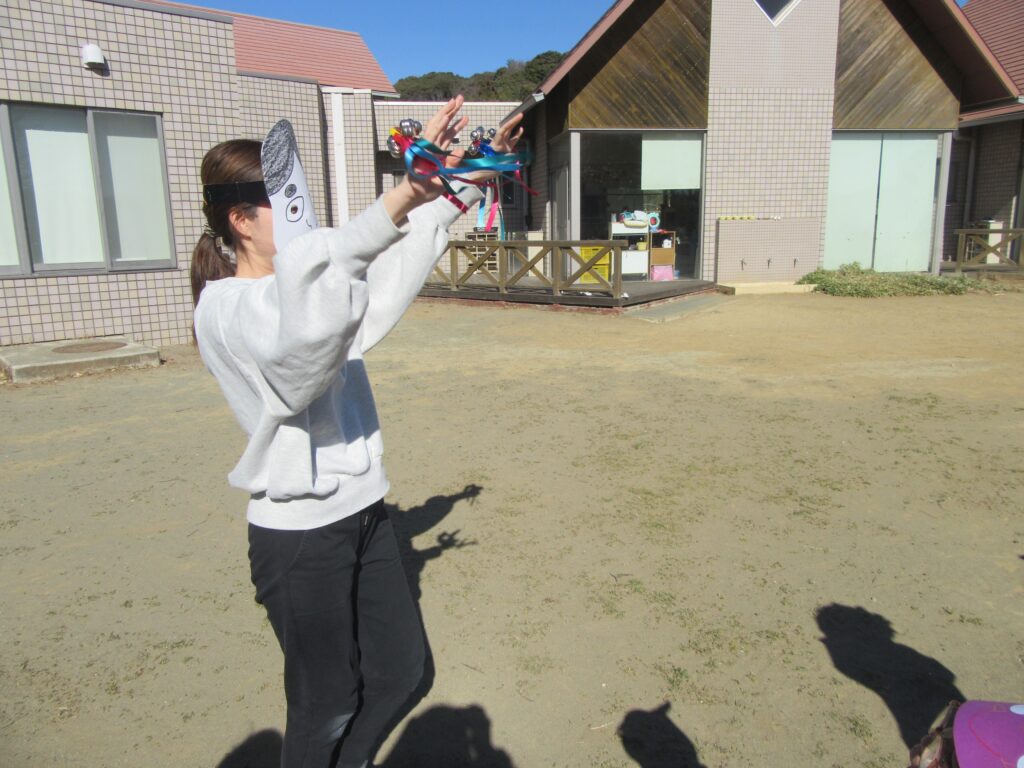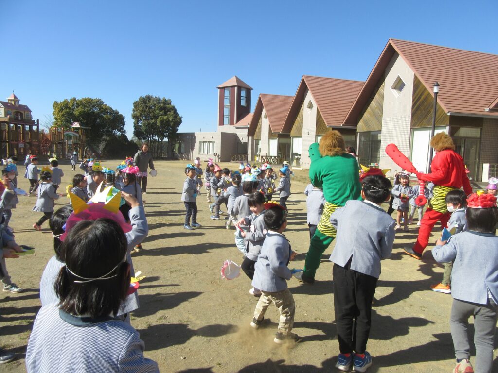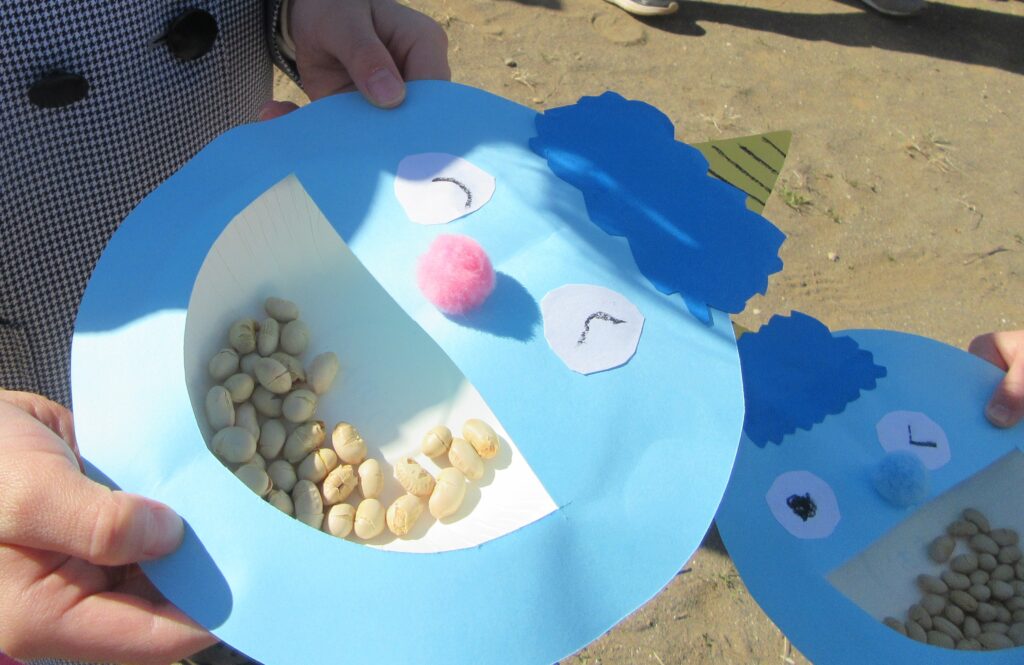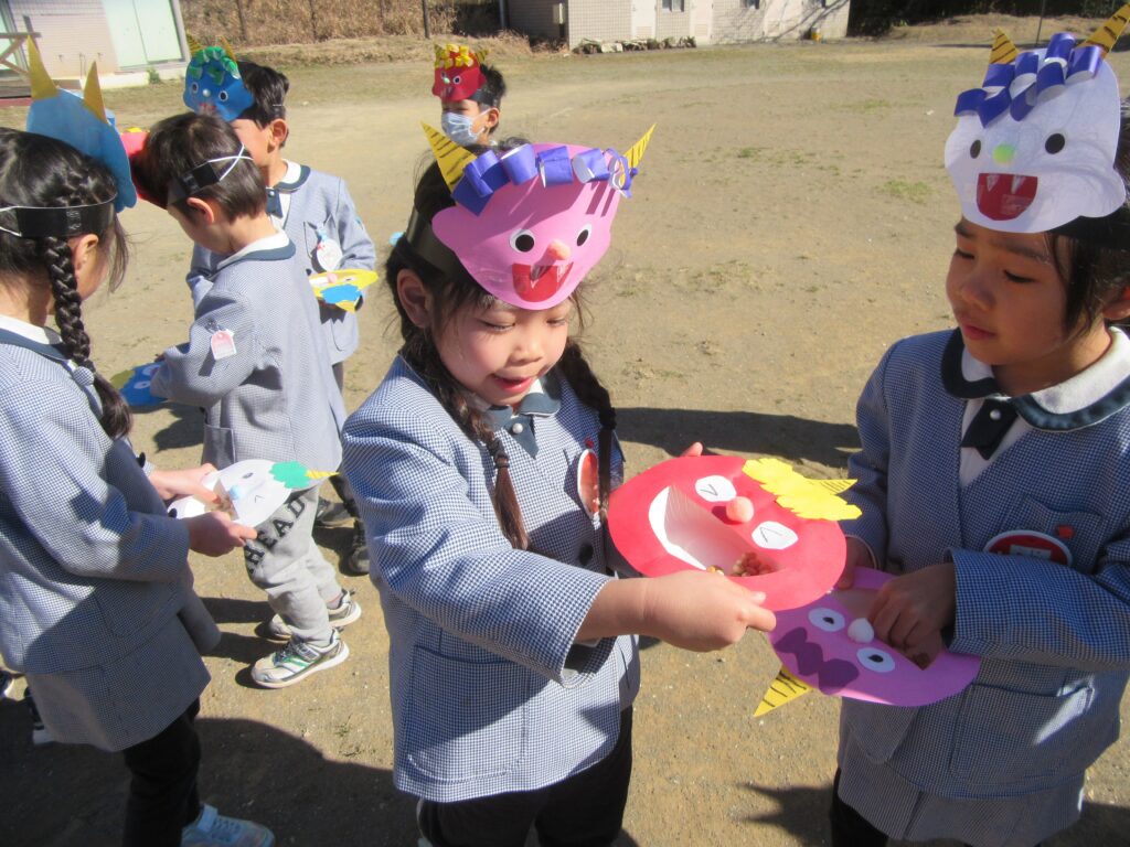 そして、園庭で豆まきをしました🫘