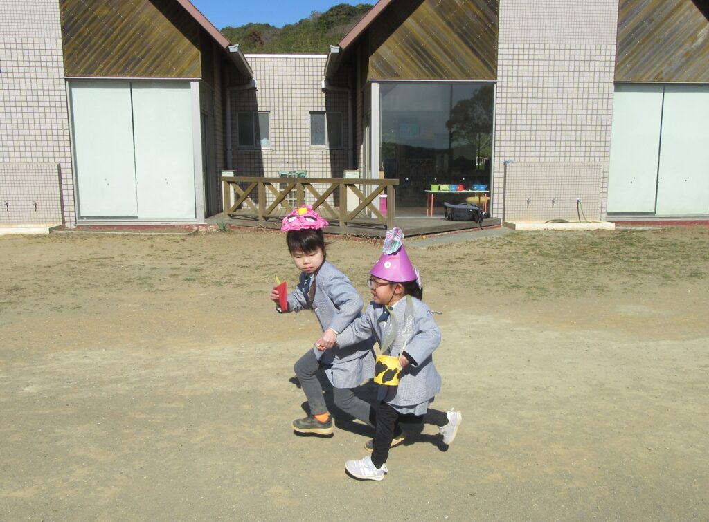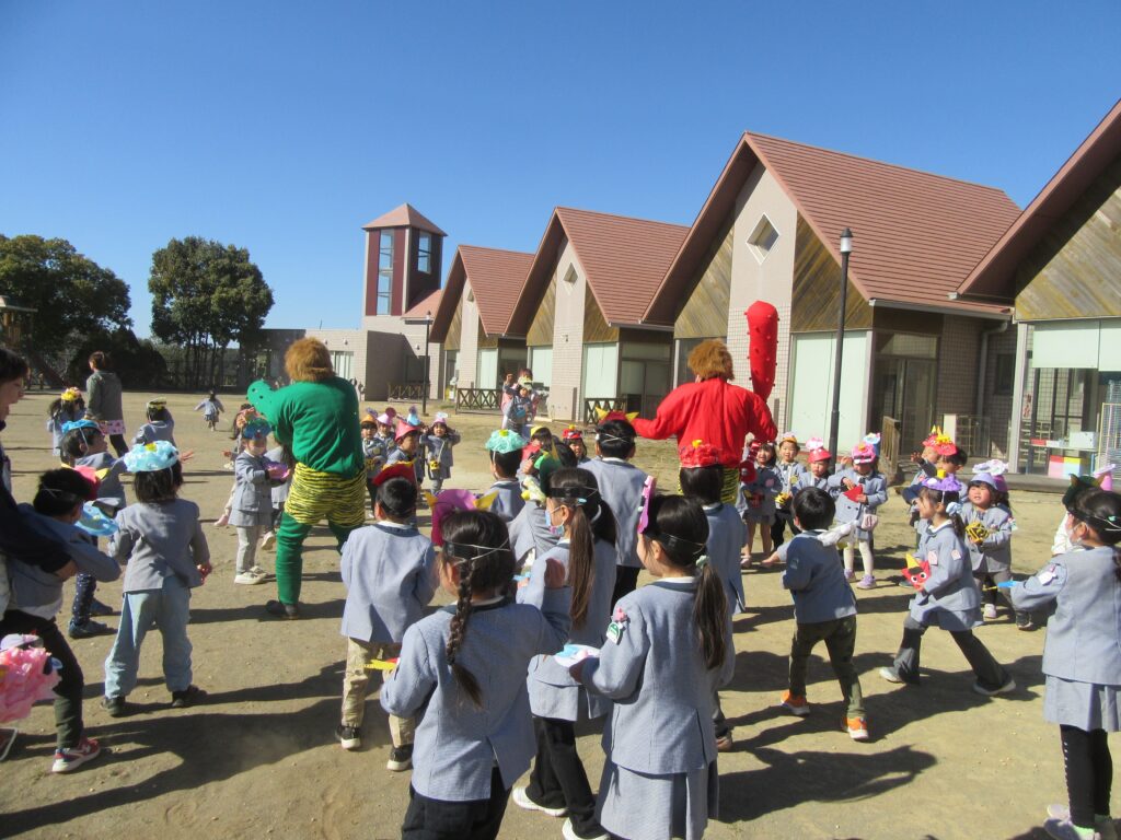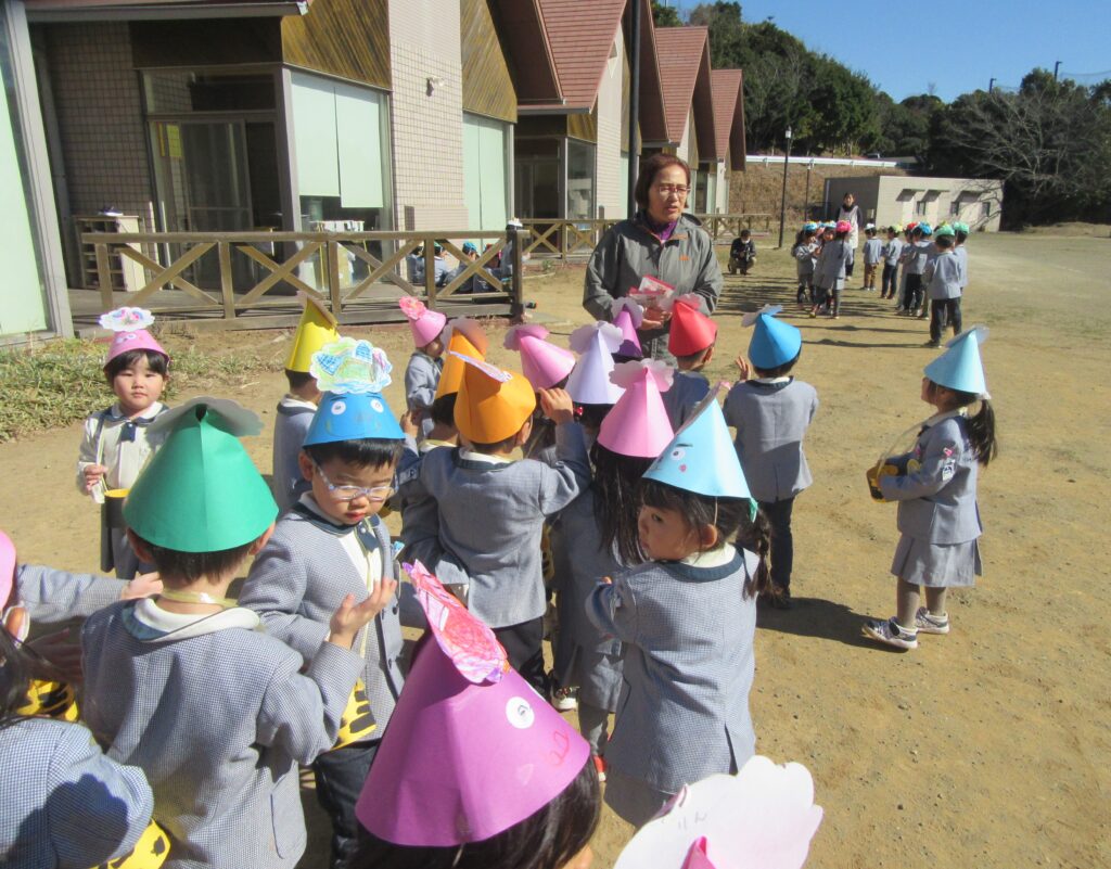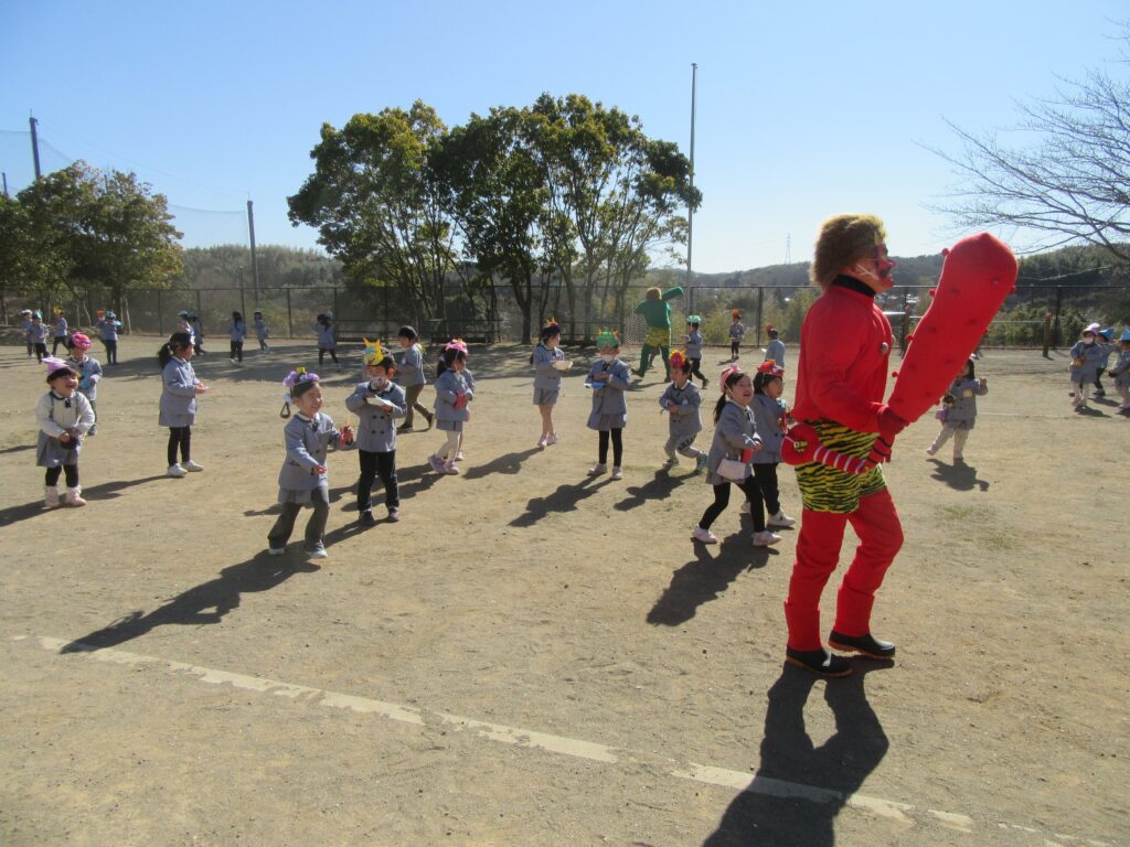 そして、園庭で豆まきをしました🫘