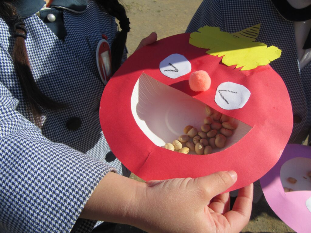 きりん組さんは、豆入れがとっても凝っていて鬼の口になっています💡